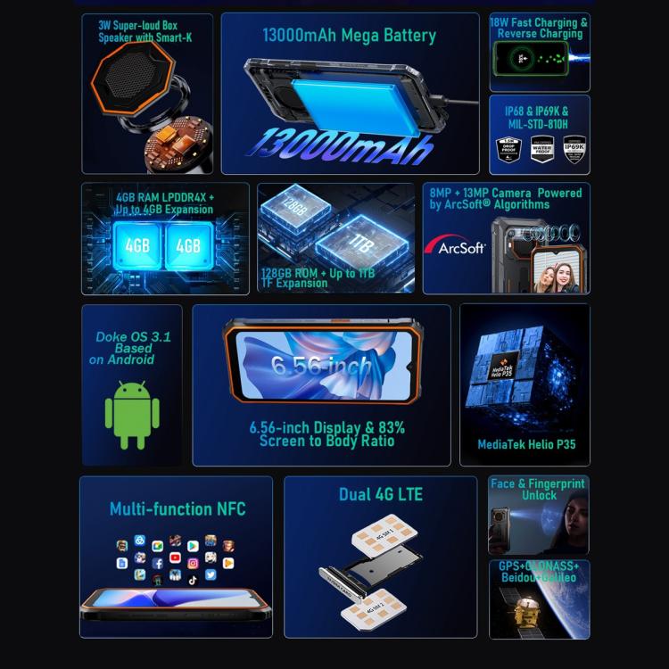 20. Protección: IP68/IP69K / MIL-STD-810H Impermeable A prueba de polvo A prueba de golpes