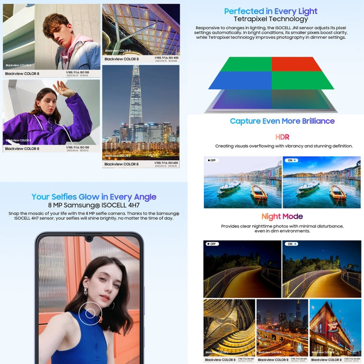 Blackview COLOR 8, Identificación de Huellas Dactilares y Rostro, 6.75 Pulgadas Android 13 Unisoc T616 Octa Core hasta 2.2GHz, Red: 4G, OTG