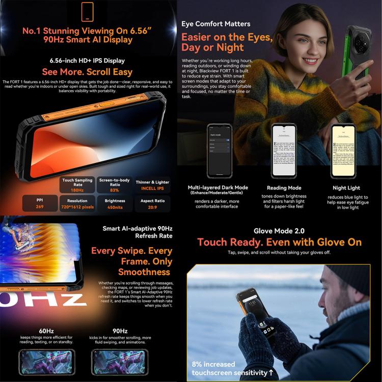 Blackview FORT 1, 6GB+256GB, 6.56 inch Android 15 Unisoc UMS9230E T615 Octa Core, Network: 4G, OTG, NFC