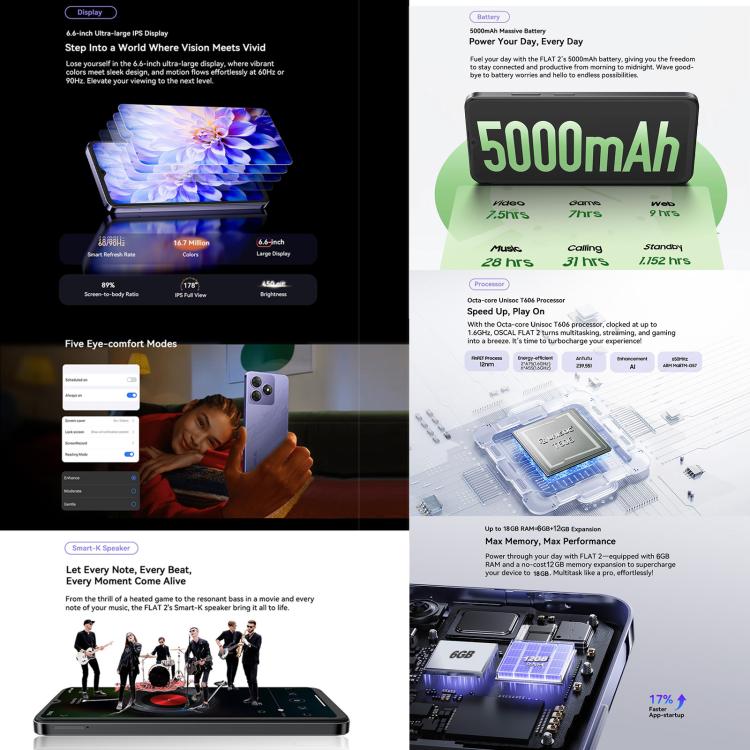 Blackview Oscal FLAT 2, 4 GB + 128 GB, 6,6 pulgadas Android 14 Unisoc T606 Octa Core, Red: 4G