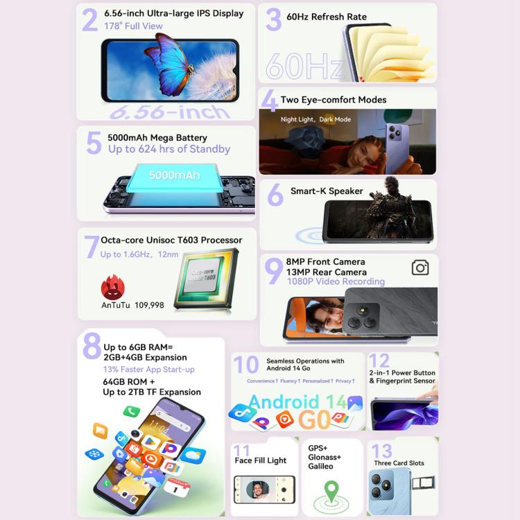 Blackview Oscal FLAT 2C, 2GB+64GB, 6.56 inch Android 14 Unisoc SC9863A T603 Octa Core, Network: 4G