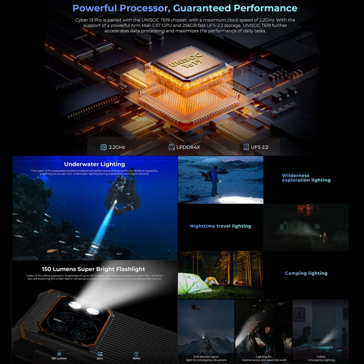 The HOTWAV CYBER 13 Pro is a rugged smartphone built for adventurers, field workers, and power users who demand durability and long-lasting performance. With a powerful UNISOC T6192 processor, 12GB RAM and 256GB storage, plus a massive 10800mAh battery, this device delivers reliable multitasking, expansive local storage, and industry-leading endurance—ideal for remote work, outdoor exploration, and heavy multimedia use.