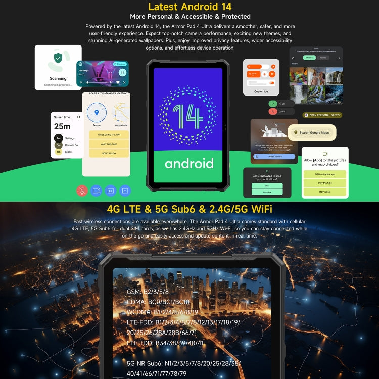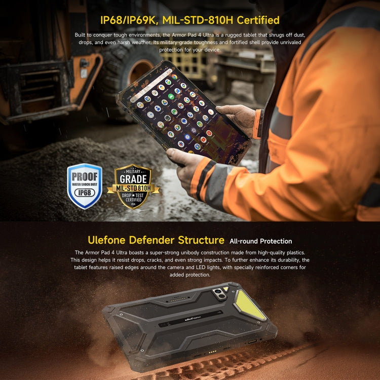 The Ulefone Armor Pad 4 Ultra Thermal Tablet is a rugged 10.36-inch 5G tablet built for field professionals, outdoor adventurers, and tech-savvy users who need durable performance and specialized thermal imaging. Combining a bright FHD+ display, powerful MediaTek Dimensity 6300 processor, and integrated thermal sensor, this tablet delivers fast connectivity, long battery life, and mission-ready features for inspections, surveying, and on-the-go productivity.