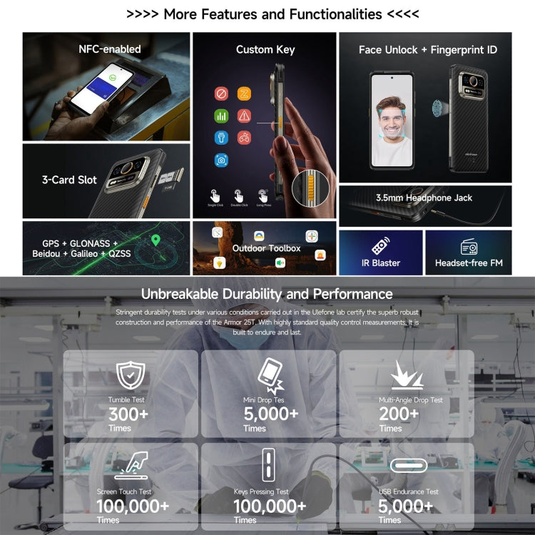 - Connectivity & Durability: Dual SIM + microSD, Wi‑Fi 5, BT 5.2, NFC, GPS suites and ruggedized build with IP68/IP69K and MIL‑STD protection for harsh environments.