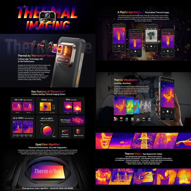 The Ulefone Armor 25T Rugged Smartphone 6GB+256GB Thermal is a purpose-built device for field professionals, outdoor enthusiasts, and first responders who need a tough, feature-rich phone with integrated thermal imaging. Combining a high-performance MediaTek Helio G99 processor, large 6.78" 120Hz display, and a built-in ThermoVue thermal camera, this rugged smartphone delivers fast daily performance, reliable long-life battery power, and on-demand temperature diagnostics for inspections and safety checks.