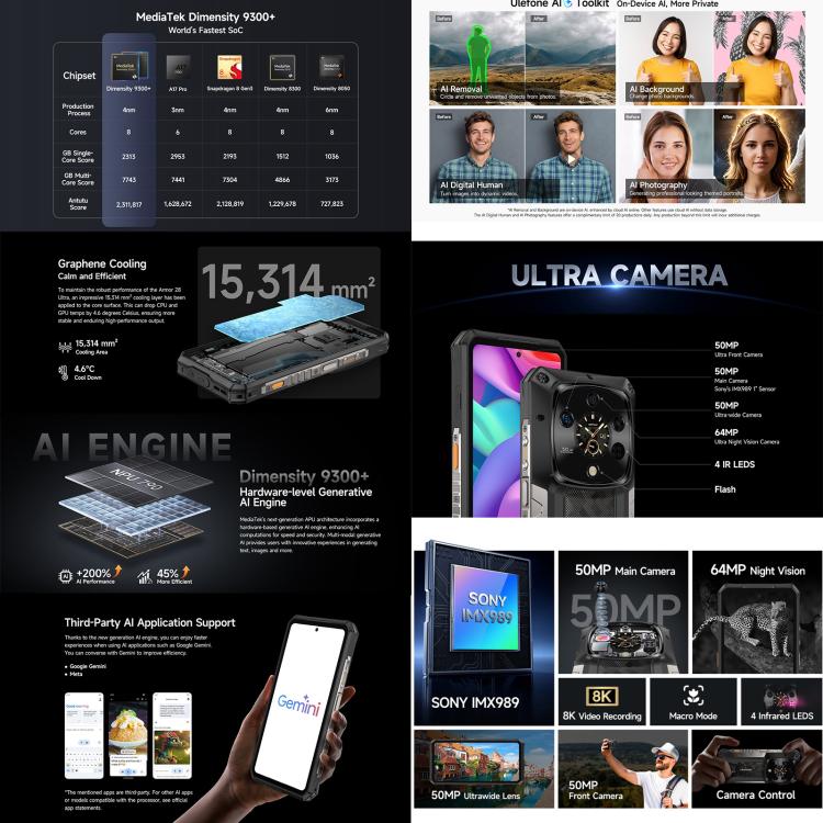 The Ulefone Armor 28 is a rugged smartphone built for adventurers, field workers, and anyone who demands extreme durability without compromising flagship performance. Packed with MediaTek Dimensity 9300+, 5G connectivity, and a massive 10,600mAh battery, this 16GB+1TB powerhouse delivers reliable power, fast speeds, and generous storage in a tough, IP-grade chassis — ideal for outdoor professionals and power users who need a phone that keeps going.