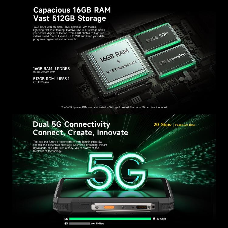 - Memory & Storage: 16GB RAM + 16GB dynamic RAM and 512GB UFS3.1 ROM with microSD expansion up to 2TB for extensive apps, media, and offline maps.