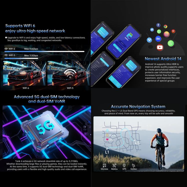 El Unihertz 8849 Tank Rugged Smartphone 12GB+512GB 5G Night es un teléfono resistente diseñado para aventureros, profesionales de campo y usuarios que exigen durabilidad extrema sin renunciar a rendimiento de primera. Combina un procesador MT6878 Dimensity 7300 octa‑core, memoria abundante y una batería gigante con capacidades de imagen avanzadas, incluida visión nocturna, para mantenerte conectado y productivo en entornos hostiles.