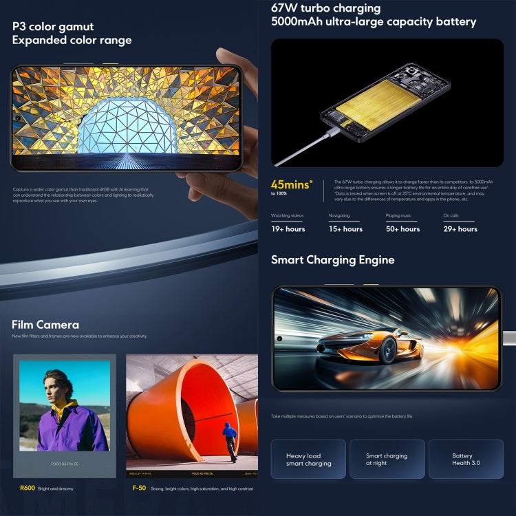 - Battery & Charging: 5000 mAh battery with 67W USB-C turbo wired charging for all-day use and rapid top-ups.