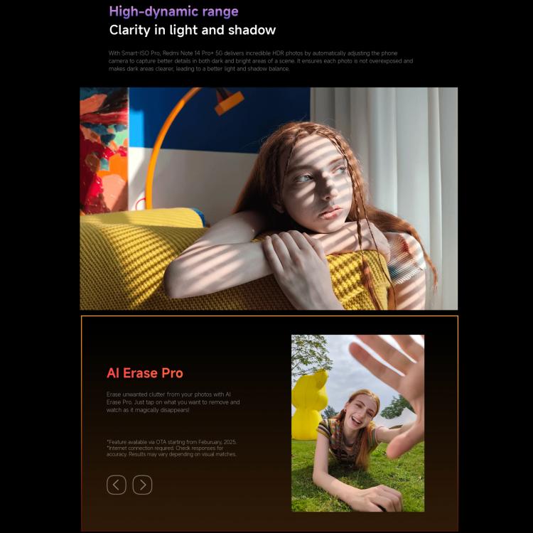 Final thoughts: The Redmi Note 14 Pro+ 5G combines flagship‑grade imaging, a high‑refresh AMOLED display, substantial memory and blistering 120W charging in a sleek, travel‑ready package. Backed by Xiaomi HyperOS and advanced AI features like Google Gemini and on‑device AI tools, it’s built for creators and power users. Order now to experience cutting‑edge performance and style.